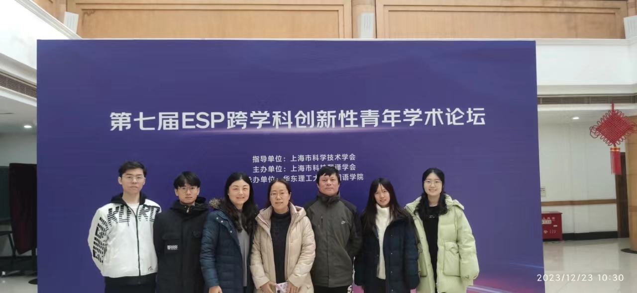 2023年12月23日上午,由上海市科学技术协会指导,上海市科技翻译学会主办,以及《上海翻译》编辑部、《pp电子官方网站入口学报(社会科学版)》编辑部等组织协办的第七届ESP跨学科创新性青年学术论坛在华东理工大学逸夫楼报告厅成功举行,pp电子英语系(中美合作)禹一奇老师、英语系(科技翻译)孔祥立老师和冷冰冰老师,以及2021级英语笔译杨博超同学、2022级英语笔译顾文昊同学、2023级英语笔译王珂安和董泉邑同学,师生一行七人参会进行了交流,冷冰冰老师在闭幕式环节做嘉宾代表发言。