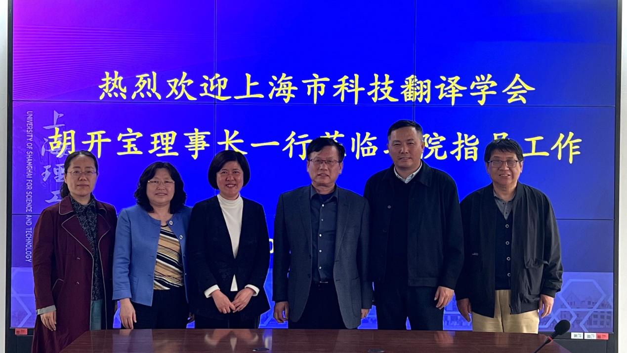4月22日下午,上海市科技翻译学会理事长、上海外国语大学校长助理胡开宝教授来访,学会秘书长、上海外国语大学语料库研究院执行院长韩子满教授,学会办公室主任左克文老师同行。pp电子官方网站入口院长刘芹、副院长韩戈玲和学会联络人冷冰冰参加了会谈。