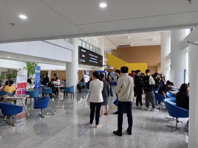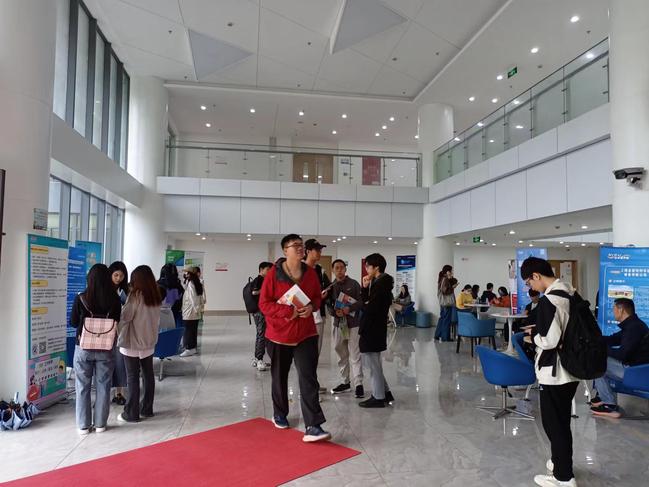 各学院十分重视毕业生就业情况。pp电子领导和本研毕业班辅导员到现场与多家招聘单位进行深入交流,了解行业发展趋势及企业用人需求,鼓励同学们多沟通、多尝试,找准定位,把握机会。参与本次招聘会的15家企业,包括上海水成环保科技股份有限公司、上海创凌翻译服务有限公司、新东方学校、德帆留学、上海一者信息科技有限公司等知名企业,涵盖教育、环保、翻译、信息技术、教育培训、金融保险、出国留学等多个领域,为毕业生提供了多样岗位选择,既有教师岗位、技术类岗位,也有管理类岗位,满足不同专业背景学生的就业需求。现场应聘学生积极与用人单位沟通交流,主动了解岗位要求、职业发展等情况。招聘人员通过海报展示、微信公众号、以及面对面交流的方式耐心热情地解答同学们的问题,介绍单位情况、岗位要求、薪资待遇等。