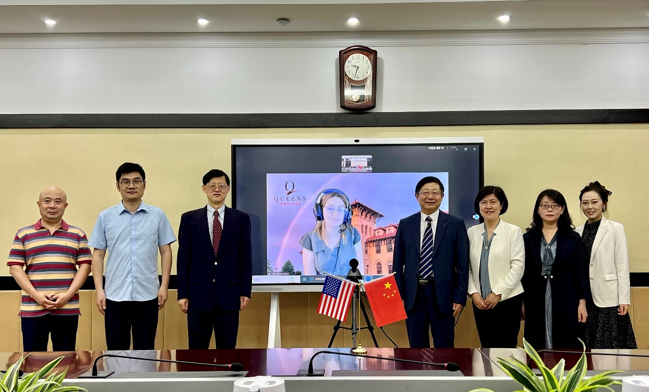 6月5日上午,pp电子官方网站入口中外合作办学项目-pp电子官方网站入口与美国纽约市立大学皇后学院合作举办的英语专业本科教育项目联合管理委员会会议在学校思晏堂召开。会议由张华副校长主持,美国纽约市立大学皇后学院社会科学和商学院院长Kate Pechenkina教授线上参会,美方项目负责人、经济系副系主任Tao Wang教授,pp电子官方网站入口刘芹院长,国际交流处徐璟玮副处长,pp电子官方网站入口和国际交流处相关负责人参加会议。