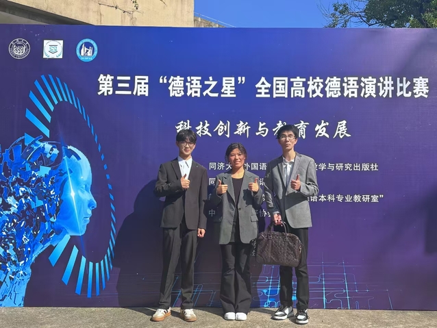 2024年11月3日,由同济大学外国语学院、外语教学与研究出版社主办,同济大学外国语学院德语系承办,教育部首批虚拟教研室“德语本科专业教研室”协办,中国德国友好协会指导的第三届“德语之星”全国高校德语演讲比赛决赛在同济大学圆满落幕。pp电子德语系学生余济锟、韩婧、刘墨涵、张暘蕊喜获全国二等奖4项。