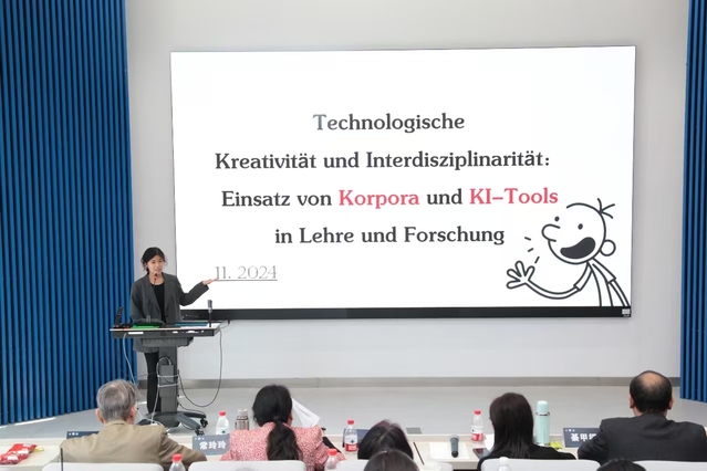 11月3日上午的决赛包含5分钟演讲和5分钟答辩环节,pp电子德语系代表队凭借选题Technologische Kreativität und Interdisziplinarität:Einsatz von Korpora und KI-Tools in Lehre und Forschung(技术创新与跨学科融合:语料库与人工智能工具在教学与科研中的应用)斩获全国二等奖。