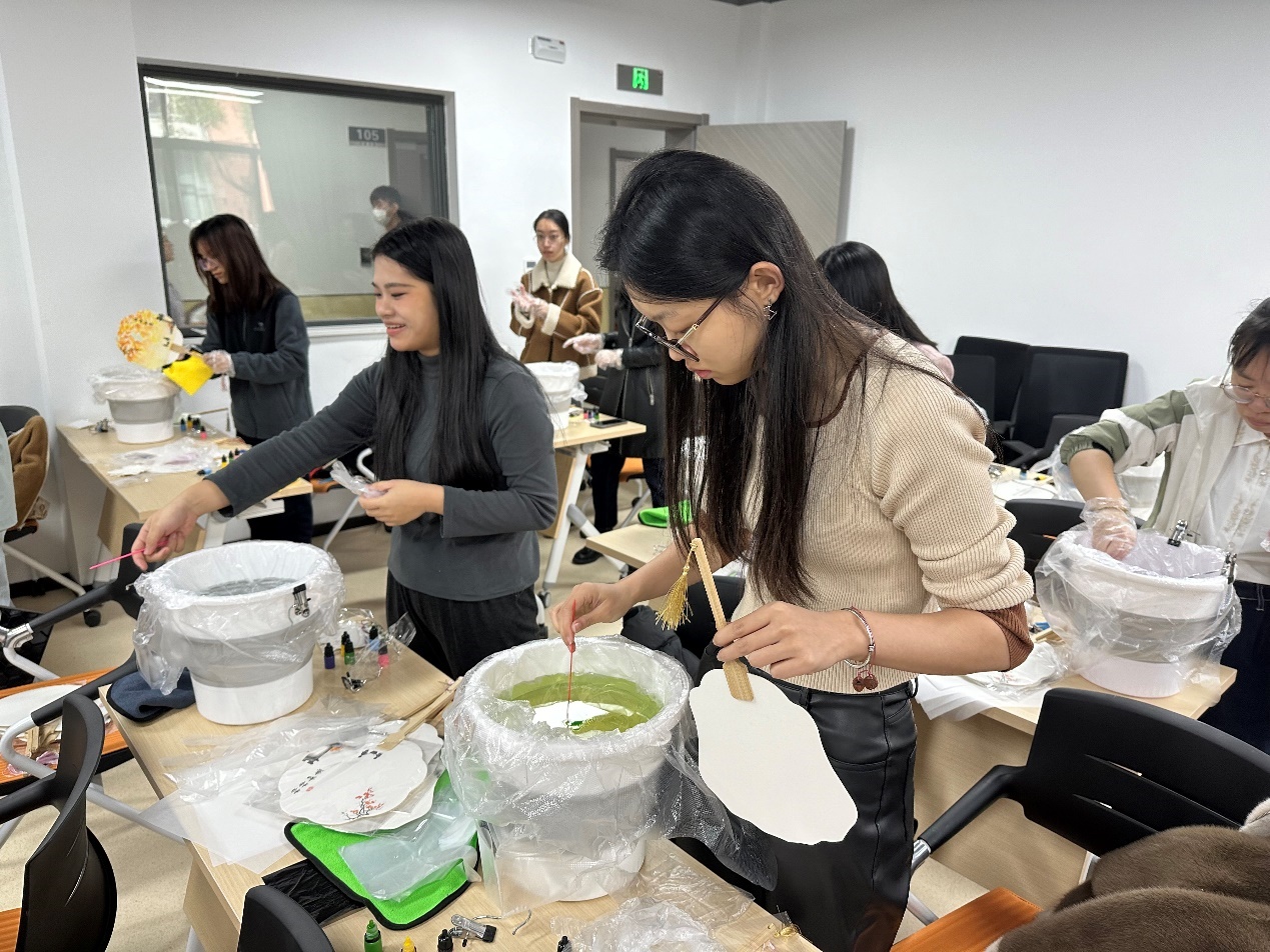 为传承中华传统非遗文化,丰富宿舍文化生活,南校区宿舍楼近日开展了“寝梦匠心:非遗文化与学生成长之旅”系列活动之漆扇体验。本次活动是“秋炫沪江”研究生科技文化节的一部分,活动吸引了宿舍楼中来自多个学院的同学热情参与,男女生齐聚一堂,共同感受非遗艺术的独特魅力。