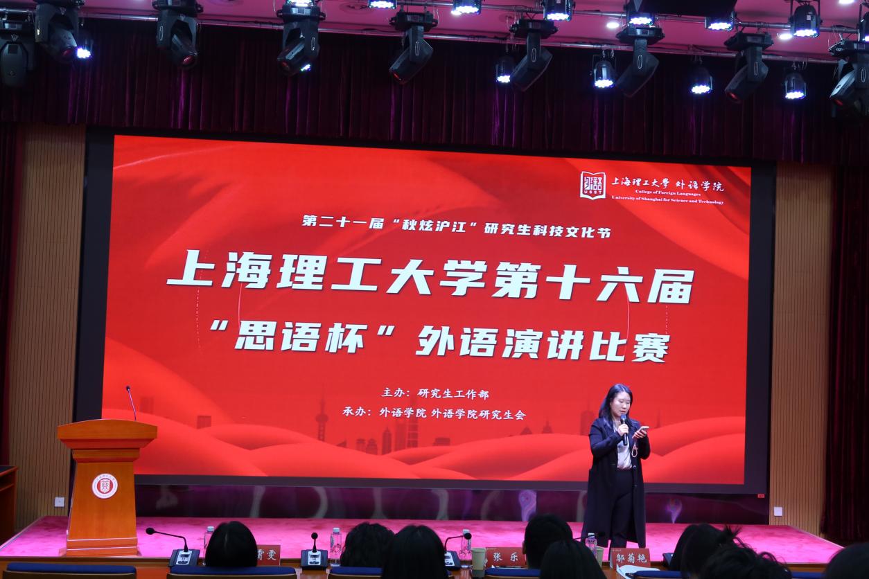 11月28日18:00,由研工部主办、pp电子官方网站入口研会承办的pp电子官方网站入口“秋炫沪江”第十六届“思语杯”外语演讲比赛决赛在国合楼五楼报告厅拉开帷幕。作为pp电子官方网站入口“秋炫沪江”科技文化节的传统项目,大赛以Inheritance and Transcendence, A New Era Interpretation of the Spirit of Scientists(传承与超越,科学家精神的新时代诠释)为主题,旨在通过探讨科学家精神的传承与超越,激励年轻一代在新时代背景下勇于创新、敢于突破,继承前辈的智慧与精神,为科技进步贡献力量。应邀出席本赛的评委有pp电子官方网站入口副院长张乐、王影君副教授、邬菊艳副教授、计霄雯博士、毕一飞博士。