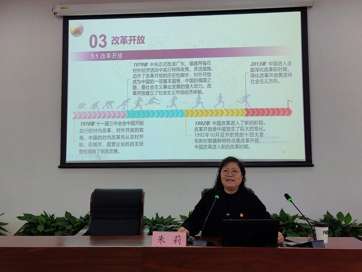 在“改革开放”板块中,朱老师通过“1978年十一届三中全会中国开始实行的对内改革、对外开放的政策——1979年中央正式批准广东、福建两省在对外经济活动中实行特殊政策——1992年进入新的改革时期——-2013年中国进入全面深化改革新时期”的讲述了我们国家经此而发生的巨大变化,我国经济实力、科技实力、国防实力、综合国力进入世界前列。进入新时代,我们党团结带领人民推动党和国家事业取得历史性成就。