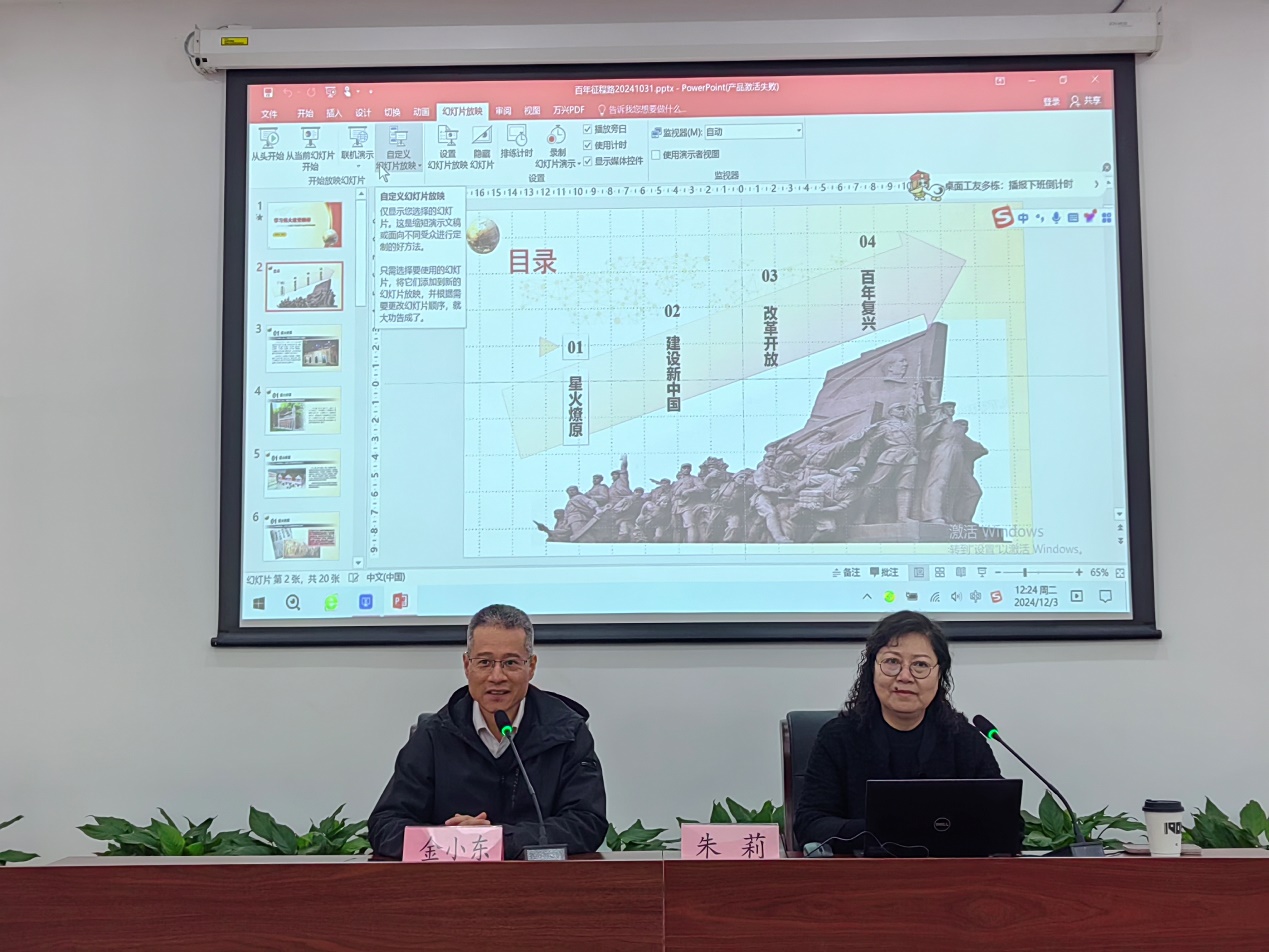 朱老师将党的百年奋斗史分为“星火燎原”、“建设新中国”、“改革开放”、“百年复兴”四个篇章,通过详细解读和生动阐述,带领同学们回顾了中国共产党从成立之初到发展壮大的伟大征程。