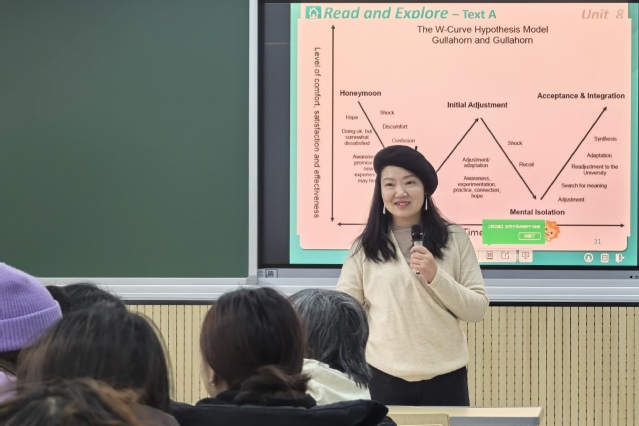 12月10日周二上午,柏钧老师开设了一堂"交互实用英语"第八单元公开课,主题为“cultural shock”。在全球化的今天,跨文化交流已成为常态,如何应对文化冲击,并在文化冲击中讲好中国故事和坚定中国文化自信,是这一单元重要的思政教学目标。柏老师通过一系列精心设计的课堂活动和实际案例,生动地阐述了文化冲击的内涵,鼓励同学们将所学知识运用到日常生活和工作场景中。课堂上,柏老师首先通过一个名为“文化差异体验”的活动开启了课程的序幕。她展示了几个不同国家的日常生活视频片段,让学生们观察并讨论其中的文化差异。接着,学生分组讨论并分享了自己遭遇文化冲击的真实故事,以及如何讲好中国故事的实践,从而使大家对这一概念有了更加具体的认识。在教学方法上,柏老师采用了任务型教学和合作式学习相结合的方式,让学生们通过小组合作的形式完成一个一个对话任务,这种互动式的教学方法不仅提高了学生的英语口语能力,还锻炼了他们的批判性思维和团队合作能力。在课堂的最后,柏老师要求学生结合课文内容,分组创作一个中国留学生在美国留学2年的案例,并通过案例生动展示文化冲击的具体表现和应对方法。