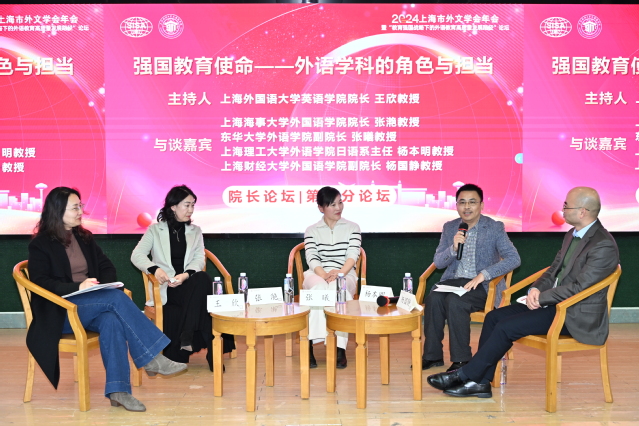 12月15日下午,由上海市外文学会主办、上海财经大学外国语学院承办的2024年上海市外文学会年会暨“教育强国战略下的外语教育高质量发展路径”论坛成功举办。上海市外文学会会长、副会长、常务理事、理事及会员代表和特邀代表等近两百人齐聚上海财经大学。与会专家学者深入探讨了在实施教育强国战略过程中,外语教育如何实现高质量发展等重要问题。pp电子刘芹院长、韩戈玲副院长、张乐副院长、语言学研究所所长倪锦诚、英语(中美合作)系主任黄芳、英语(科技翻译)系副主任韩洋、日语系主任杨本明、德语系主任卞虹一行8人出席此次论坛。