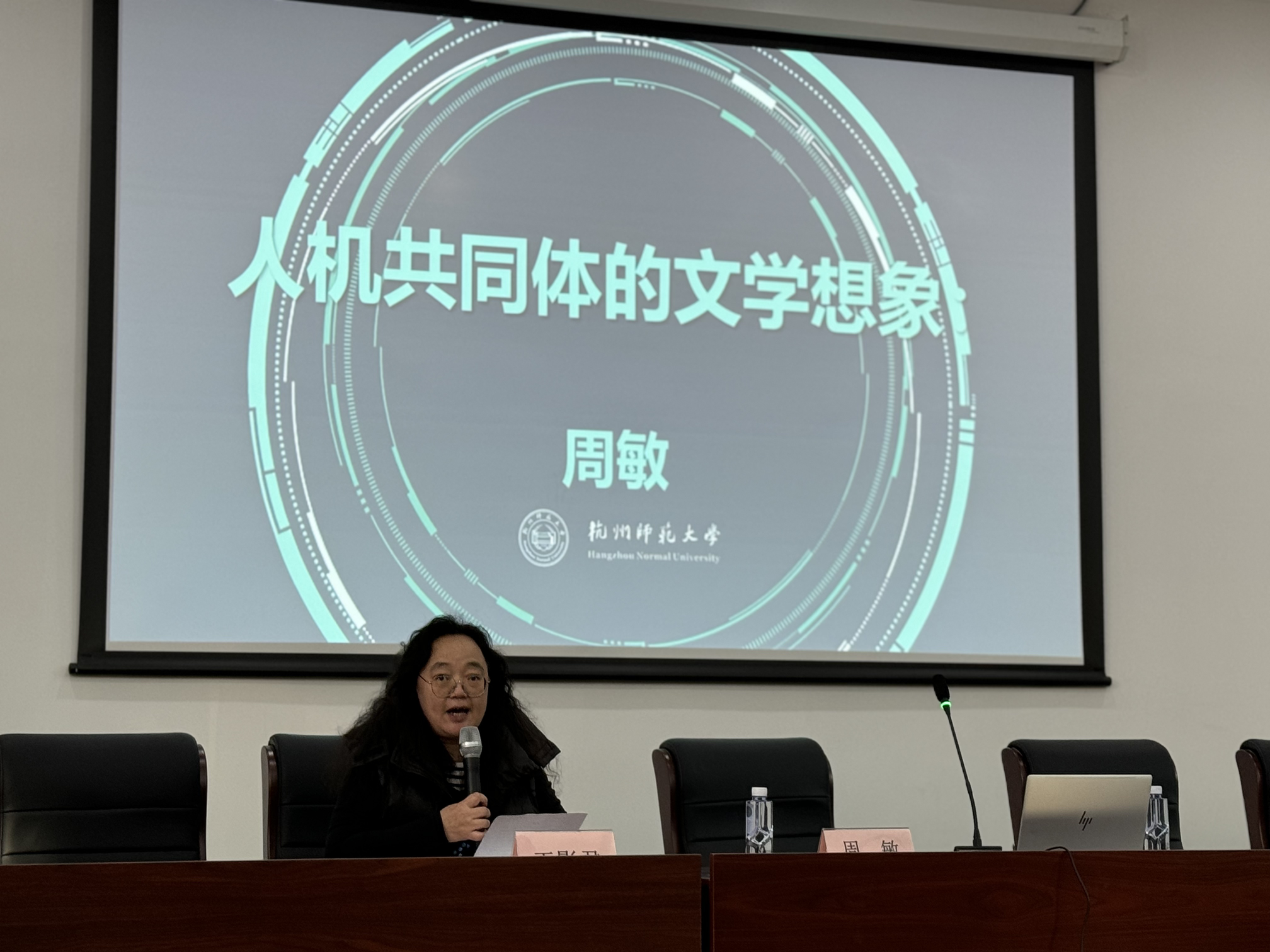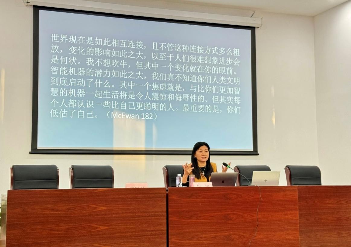 12月20日下午,杭州师范大学特聘教授、外国语学院院长、教育部长江学者特聘教授周敏受邀为pp电子师生带来了题为“科幻文学的伦理教益:《像我一样的机器》的人机共同体的文学想象”的精彩专题讲座。pp电子韩戈玲副院长亲临讲座现场,王影君副教授主持。pp电子2024级研究生和外国文学研究所的部分骨干教师出席了本次讲座。