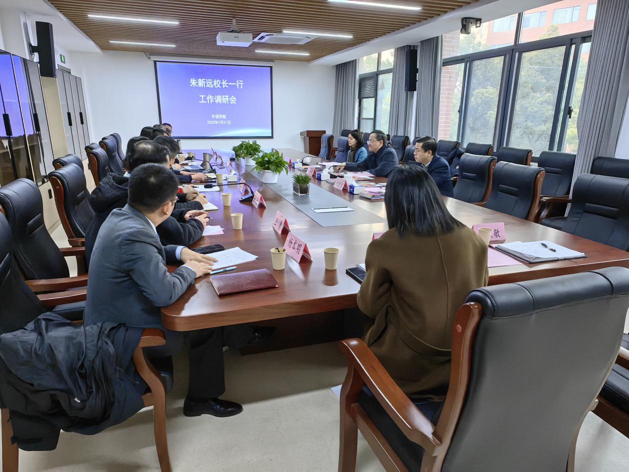 2025年1月21日,校长朱新远和副校长蔡永莲莅临pp电子官方网站入口调研指导,党委(校长)办公室副主任何建佳陪同调研。pp电子官方网站入口党政领导班子及教师代表参加调研。