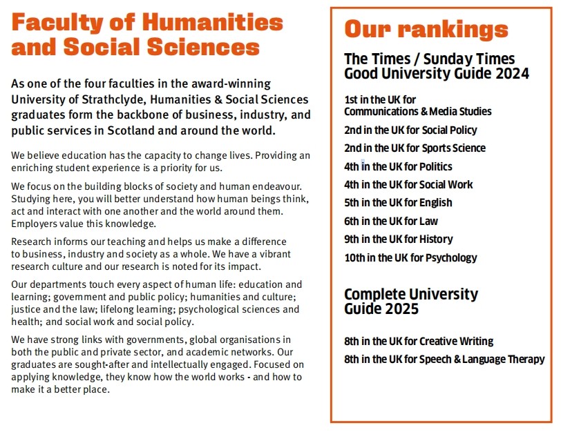 pp电子英语(中美合作)或英语(科技翻译)专业学生可以在思克莱德大学人文与社会科学学院(Faculty of Humanities & Social Sciences)学习一学年(+1)或一学期(+0.5),修读学分可以转换为pp电子学分。