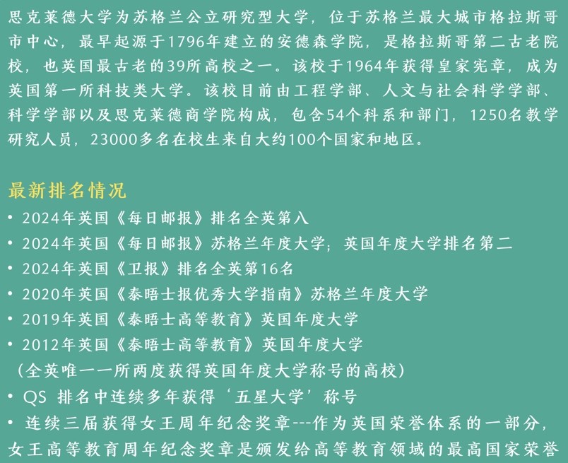 2)须符合思克莱德大学的英语语言能力要求:雅思成绩达到6.5分且每个单项成绩达到5.5分