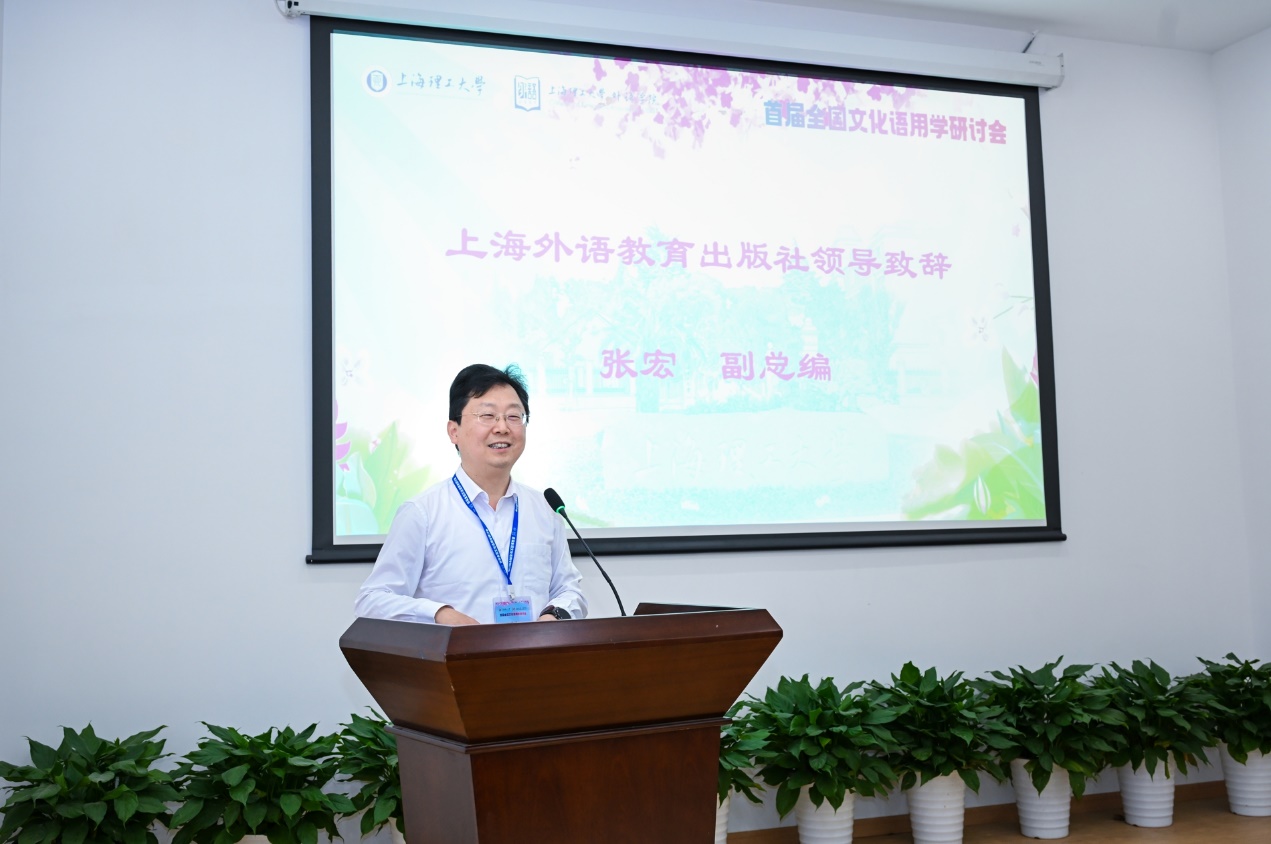 4月19日上午,研讨会开幕式在pp电子官方网站入口外语楼报告厅举行。开幕式由pp电子院长、上海市外文学会副会长刘芹主持。副校长蔡永莲致欢迎辞,她对研讨会的召开表示热烈祝贺,对与会嘉宾表示热烈欢迎,并强调人工智能时代文化语用学探讨的重要意义。上海外语教育出版社副总编辑张宏致辞,他以妙趣横生的语言,指出文化语用学对外语学科交叉研究转型的关键作用,并强调其在中国语境中的重要价值。