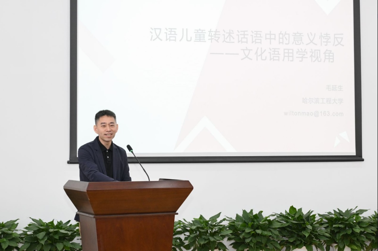 4月20日上午,广东外语外贸大学的冯光武教授在“文化知识与语用推理”的发言中,提出了以听话人为中心、文化知识为基础的语用推理模式,为语用学研究提供了新的视角。黑龙江大学的黄萍教授以“文化语用学视阈下老年语言生活多维阐释”为题,从文化语用学视角审视老年语言生活,为应对人口老龄化带来的语蚀和语损问题提供了文化语用学应对路径。哈尔滨工程大学的毛延生教授在“汉语儿童转述话语中的意义悖反——文化语用学视角”的发言中,探讨了汉语儿童转述话语中的意义悖反现象,不仅为儿童语言发展研究提供了新的思路,而且为特殊儿童群体的临床诊断与辅助康复提供语用学依据。pp电子官方网站入口的韩戈玲教授以“汉语儿童言语行为与语用发展研究”为题,通过个案跟踪和实验研究,揭示了汉语儿童语用能力的发展规律及家庭社会文化影响因素,为数智时代儿童语言教育和交际能力培养提供了参考。九位专家的精彩主旨发言为参会者提供了丰富的学术思想和研究视角。