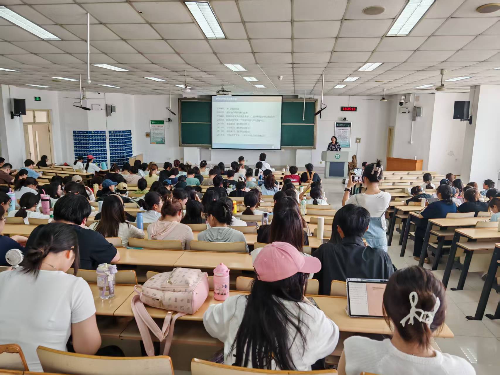 第二站到山东农业大学。外国语学院郭玲玲等热情接待。pp电子韩戈玲、王勇和毛伟老师分别做招生宣讲,近三百名学生认真听讲,整个报告厅座无虚席,场面热烈。