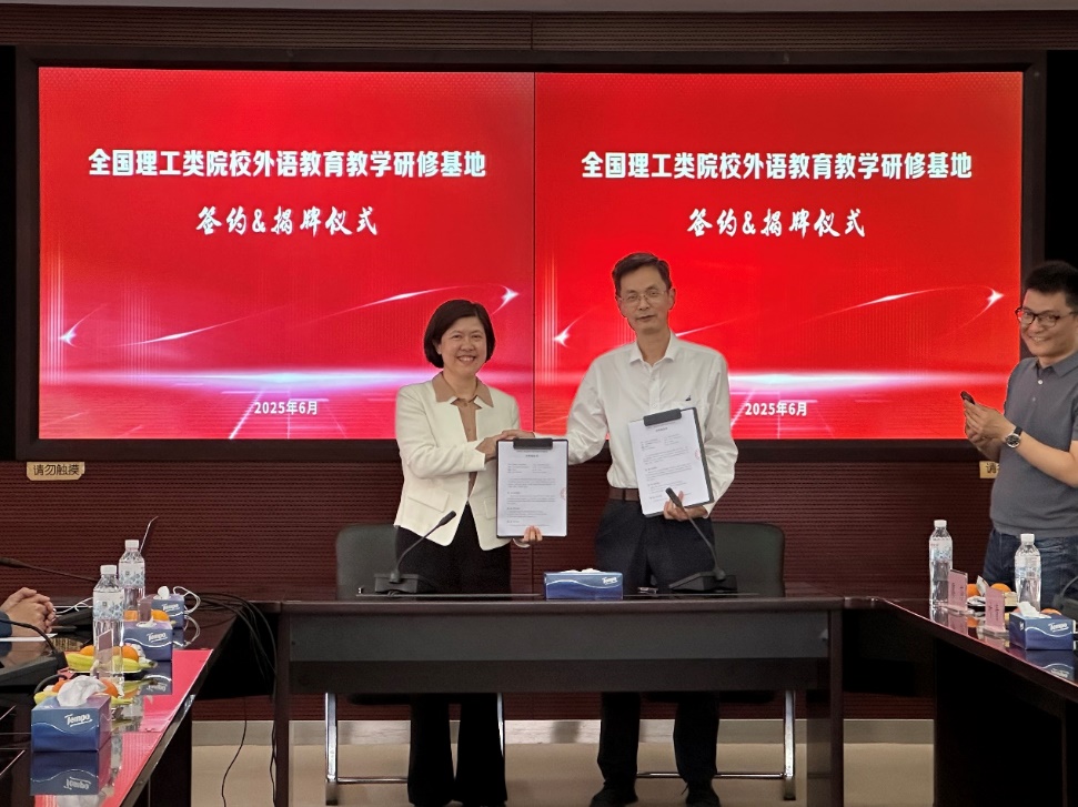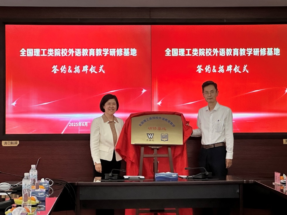 (为“全国理工类院校外语教育教学研修基地”揭牌)