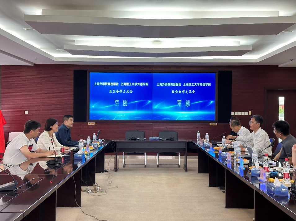 随后,双方围绕新时代外语教育创新发展情况,在人工智能技术应用、数字化教材开发、微专业建设、校企合作、学生实习就业等方面进行了重点探讨。