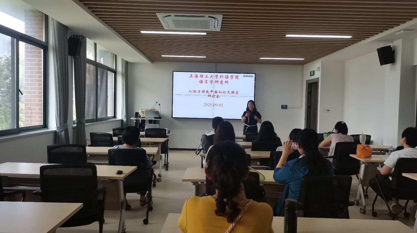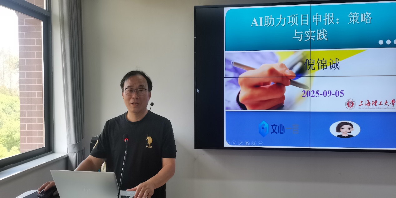 2025年9月5日,语言学研究所在pp电子官方网站入口502会议室举办AI助力课题申报和论文撰写研讨会,旨在提升教师运用AI技术增强科研能力。倪锦诚教授做了题为"AI赋能项目申报:策略和实践"的专题讲座,重点介绍了多种AI工具在生成选题、文献综述和内容优化等方面的具体应用案例。倪教授强调,在使用AI辅助申报过程中必须坚持学术诚信,确保研究成果的原创性和合规性。