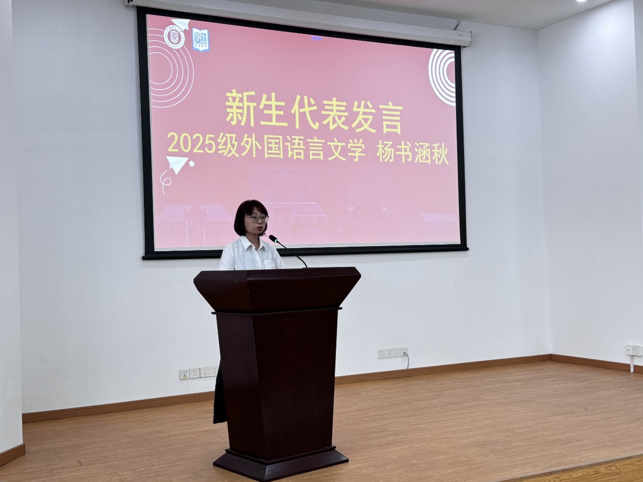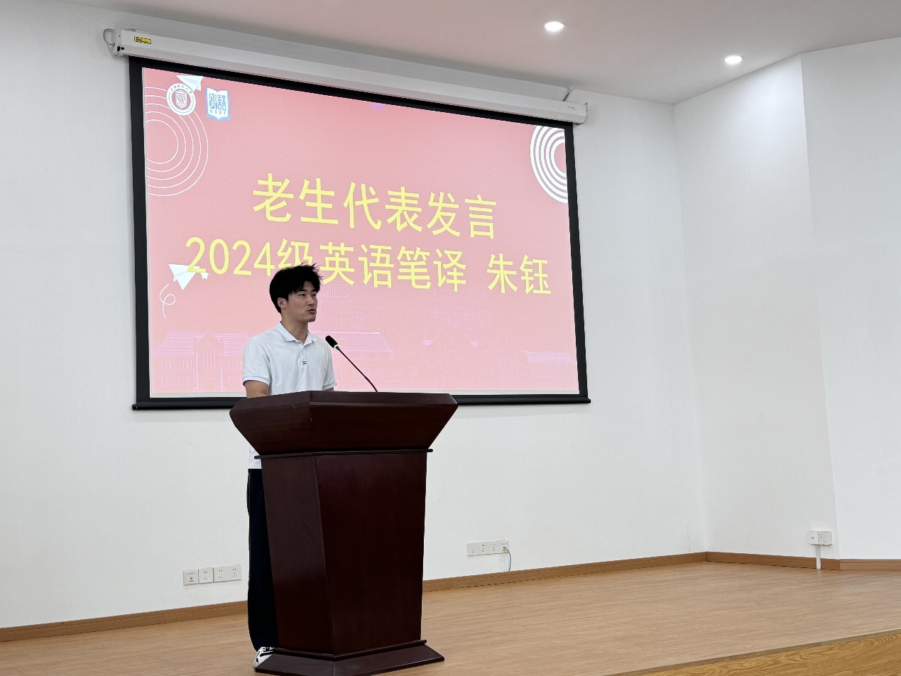 老生代表朱钰结合自身经历,分享学习心得与生活建议,为新生提供实用参考;新生代表杨书涵秋则抒发对研究生阶段的期待与决心,言语间尽显外院学子积极向上的精神风貌,实现了新老学子的温暖接力。