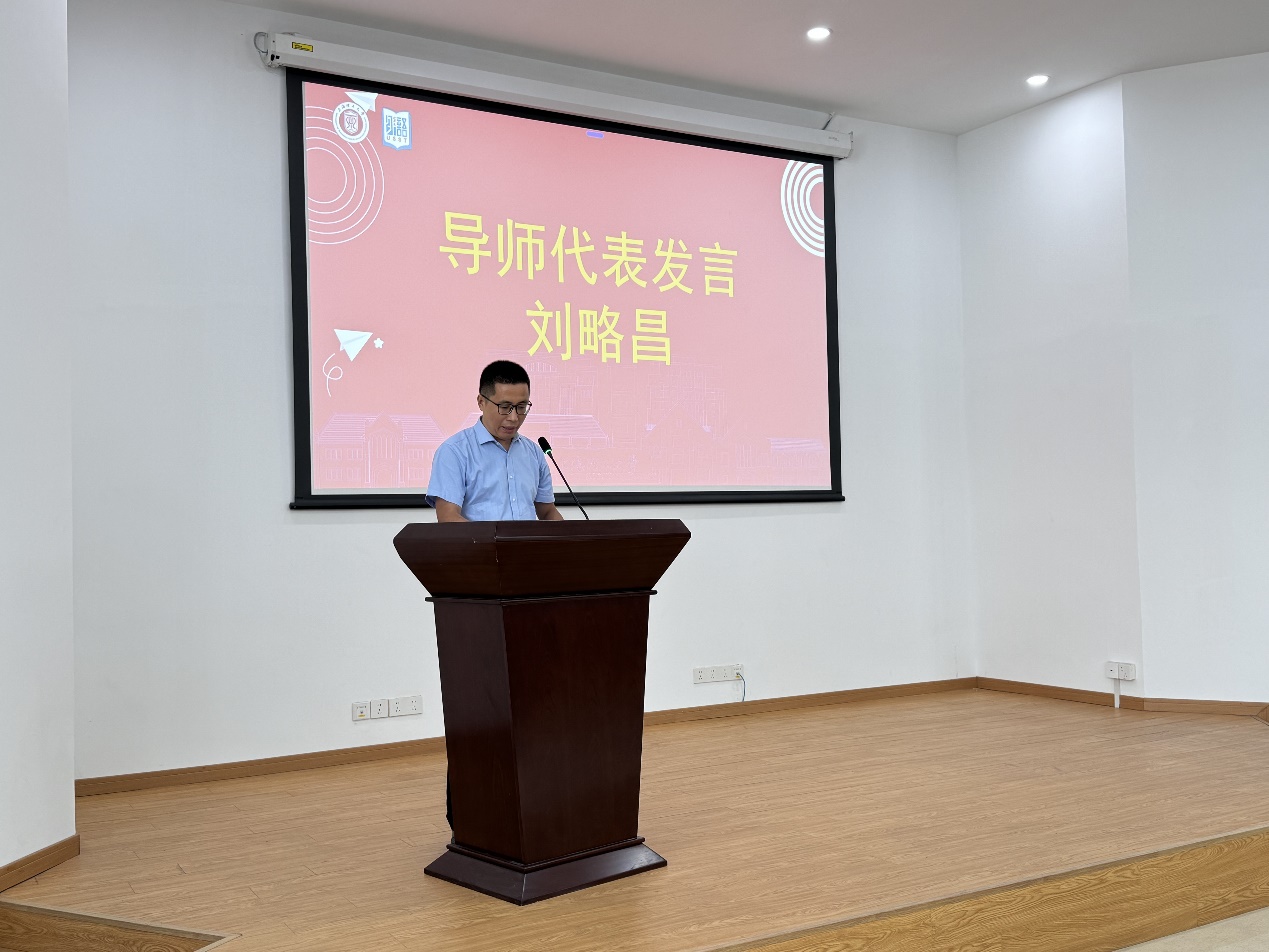 导师代表刘略昌老师以三个亲身故事分享感悟,启发新生保持专注、持续积淀、勇于突破,在学术探索中耐住寂寞、收获成长。