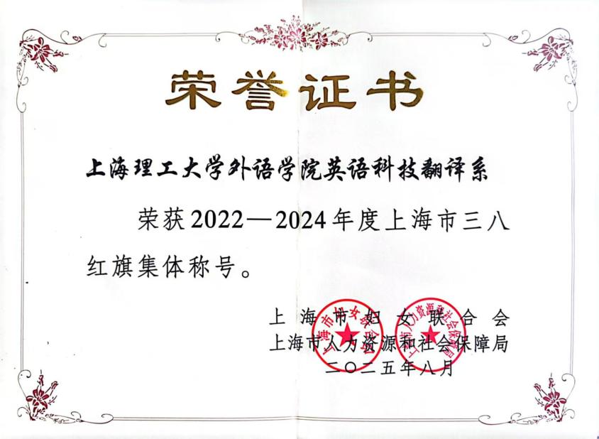 近日,上海市妇女联合会与上海市人力资源和社会保障局联合公布了2022-2024年度上海市三八红旗手(集体)表彰名单,pp电子英语科技翻译系凭借卓越的教学科研成就和突出的社会贡献,被授予“上海市三八红旗集体”荣誉称号。这一荣誉彰显了该系在高等教育领域的引领作用,以及女性教师团队在推动学科创新和服务国家战略中的关键角色。