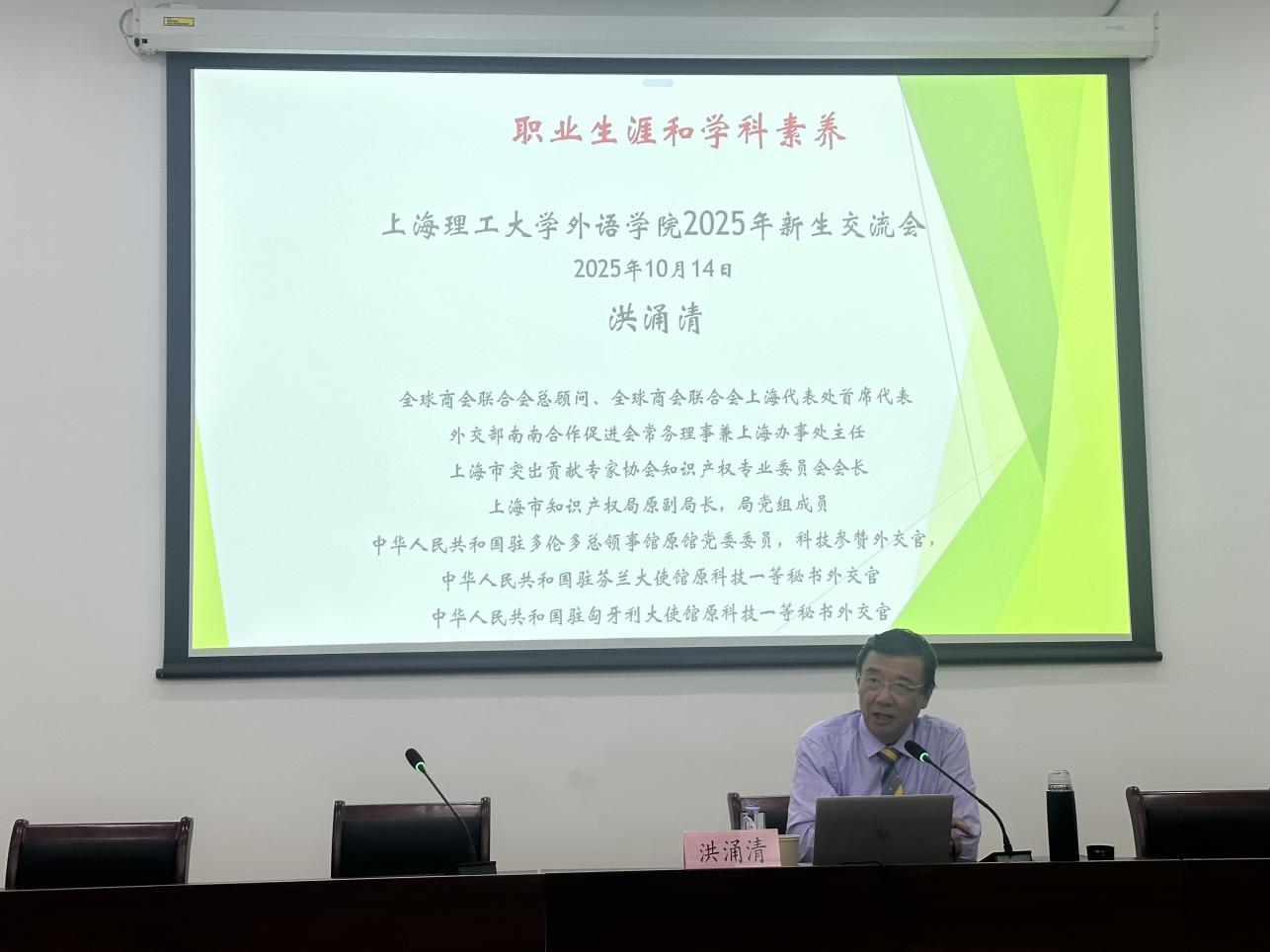 10月14日下午,pp电子官方网站入口在报告厅举办职业生涯教育专题讲座,特邀pp电子官方网站入口校友理事会会长、上海市知识产权局原副局长洪涌清先生担任主讲嘉宾。本次讲座也是pp电子官方网站入口针对大一新生开设的《职业生涯与学科素养》必修课程的其中一讲,讲座由pp电子官方网站入口学业发展中心指导老师苏予燕主持,全体大一新生、高年级本科生及研究生代表参加。